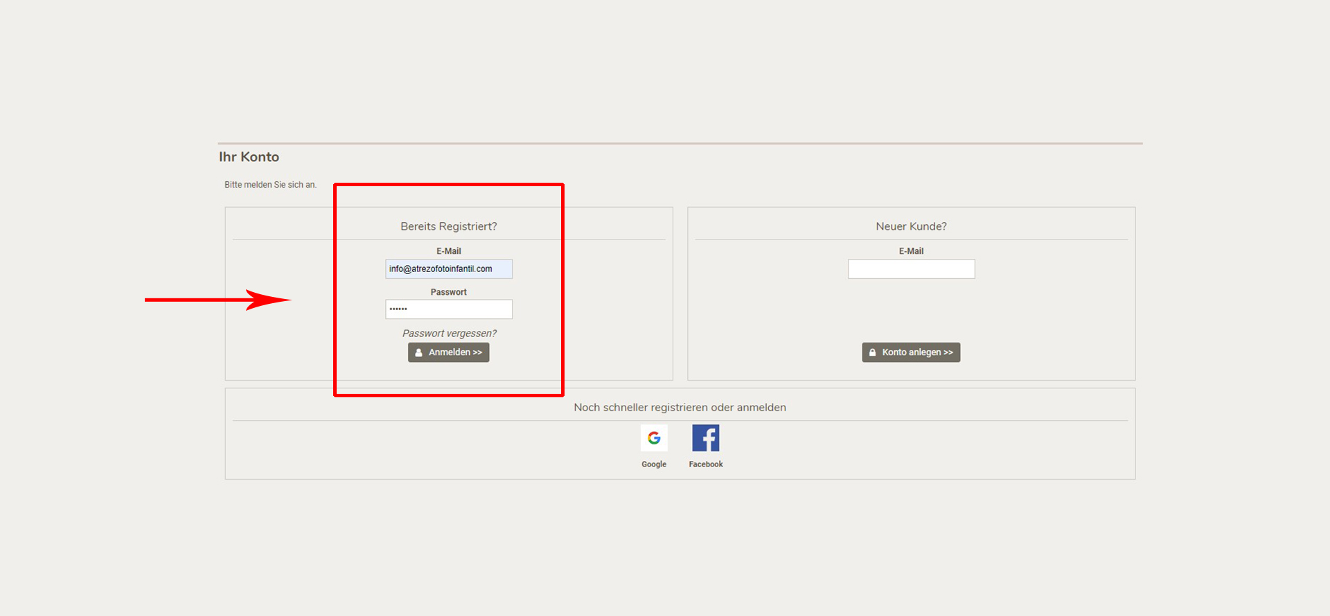 Danach schreiben Sie mal Ihre E-Mail und Ihr Passwort ein und klicken Sie auf "Anmelden"