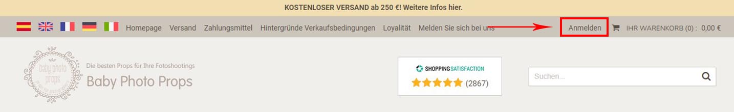 Zum Einloggen klicken Sie auf "Ihr Konto" ganz oben rechts.